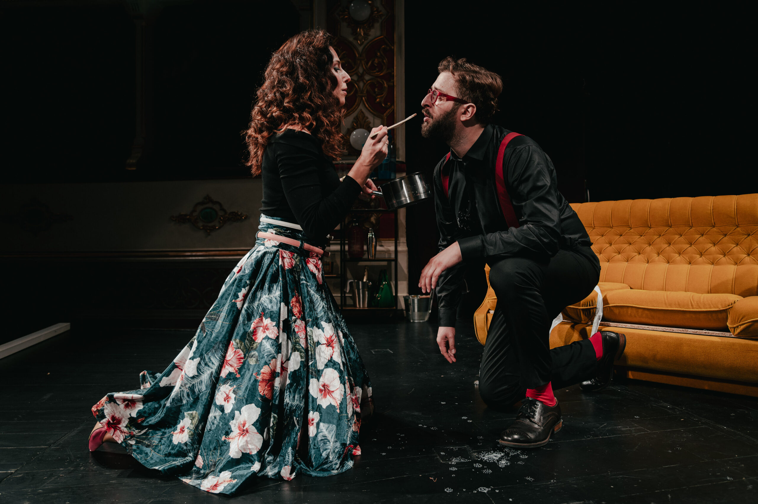 “Dođi gola na večeru“ ljubavna je priča o prevari i vrtlogu laži iz kojeg se sve teže ispetljati. Svaka nova laž gradi višu kulu od karata koja se na kraju mora raspasti. Ova zapetljana situacija likovima donosi tragediju, a gledateljima smijeh do suza i vrhunsku komediju.